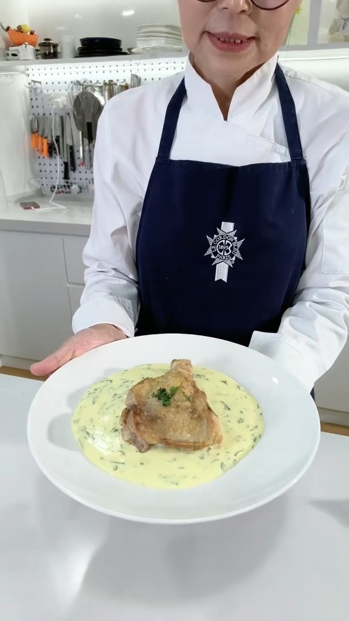 来自法国巴黎蓝带毕业于美芮老师授课 【芥末丝绒酱汁鸡排】 (Mustard Velouté Chicken) 鸡皮煎到金金脆脆, 再淋上一层滑到像奶油绸缎的芥末丝绒酱—— 微酸、微甜、顺滑不腻,整盘味道高级到不行。 这堂课你会学到: 1鸡腿排脆皮煎法 2丝绒酱汁制作 3法式白酱制作 4酱汁比例浓度 5家里也能做出西餐厅水准的摆盘 配鸡排、猪排、烤蔬菜、意大利面都很合适。。 直接汇款慧慧大众银行 今天报名学费rm199 明天报名学费rm220